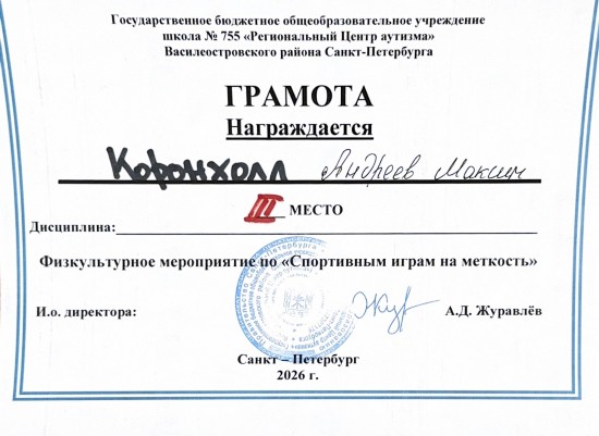 команда Валерия Л. с папой награждена Грамотой за 2 место