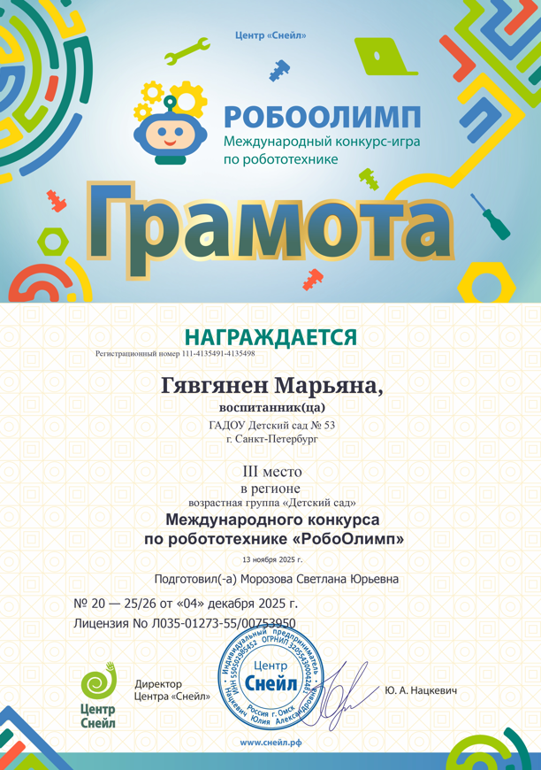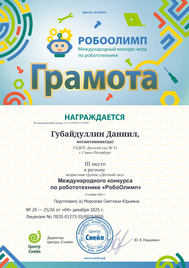 Воспитанник СПб ГАДОУ "Детский сад №53"
